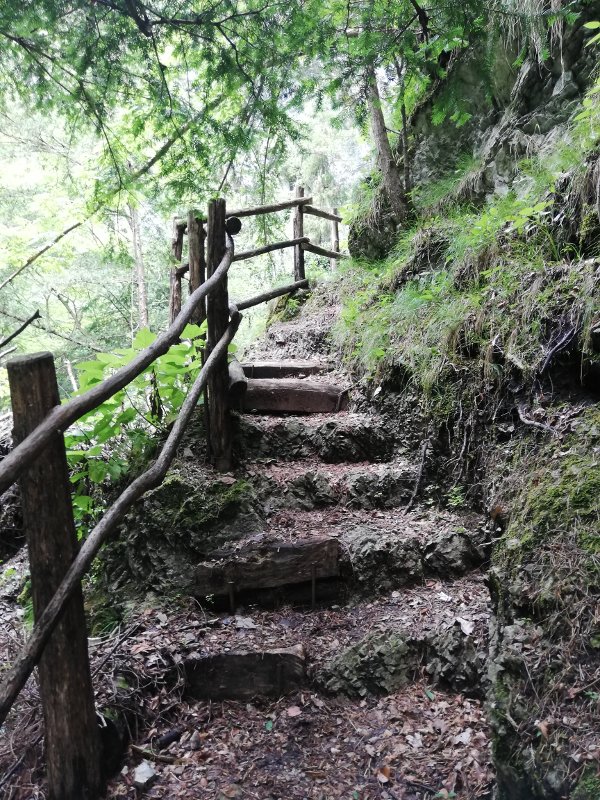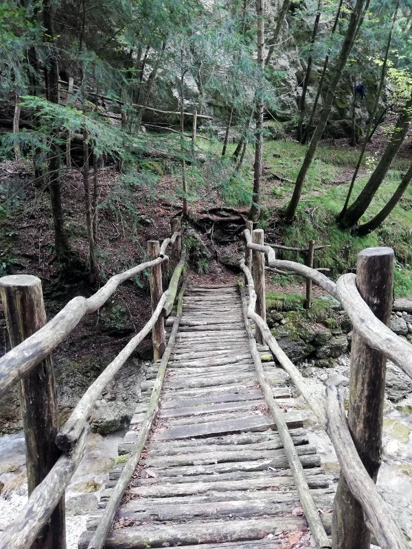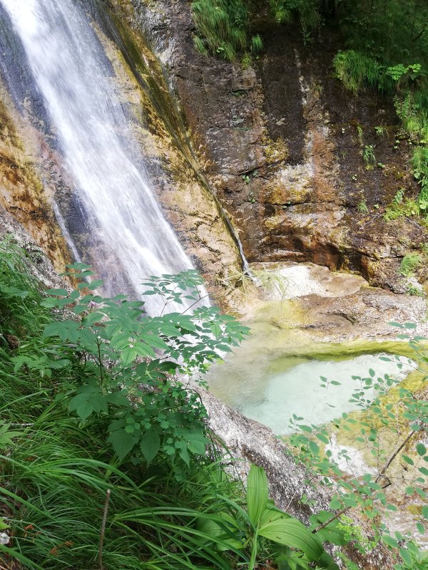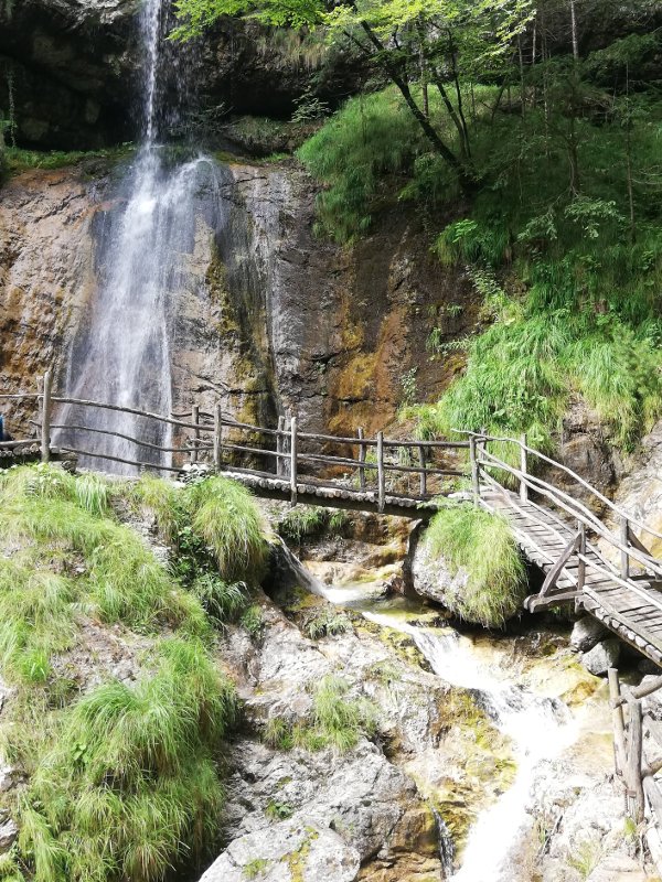 Il sentiero attrezzato con scalette e ponticelli ci porta in pochi minuti fino ai piedi della cascata, regalandoci un meraviglioso spettacolo, e ridiscende poi, in un piccolo percorso ad anello, fino al sentiero che riprendiamo per tornare alla partenza.